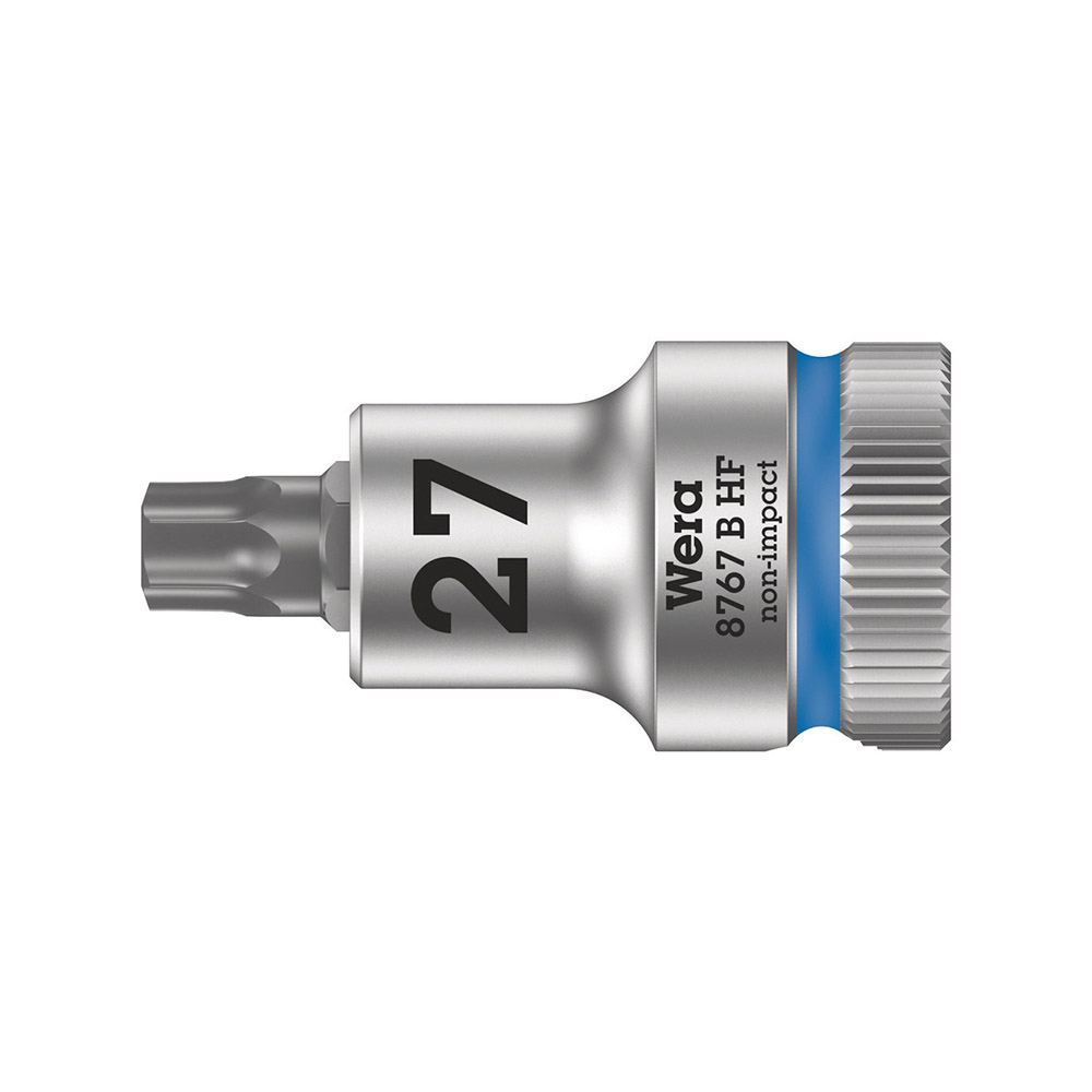 05003064001 Wera 8767 B HF TORX Dado de Punta Zyklop de 3/8” con Función de Sujeción. Tamaño de la Punta: TX 27 Longitud Total: 35.0mm Dimensión Externa: 12.0mm Diámetro Trasero: 17.5mm Altura de la Punta: 9.0mm