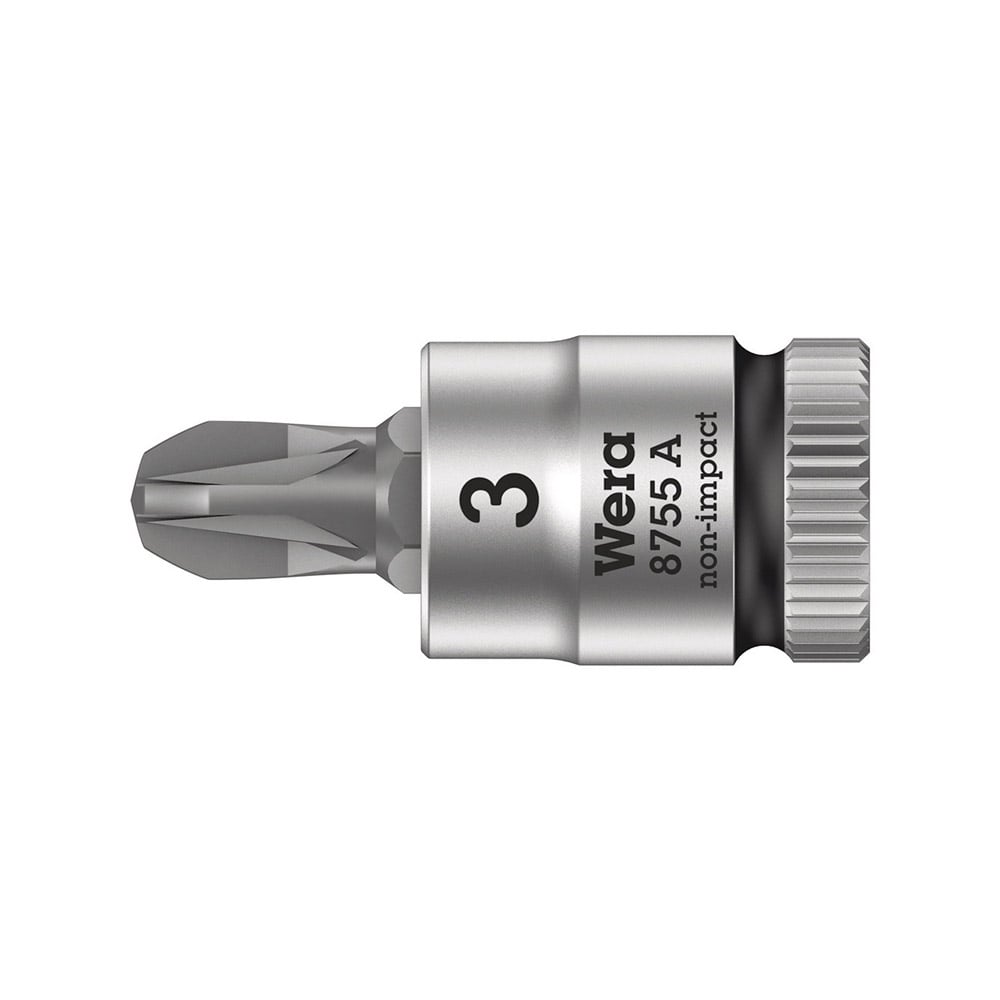 05003355001 Wera 8755 A Dado de Punta Zyklop Pozidriv de 1/4”. Tamaño de la Punta: PZ 3 Longitud Total: 28.0mm Dimensión Externa: 12.0mm Diámetro Trasero: 11mm Altura de la Punta: 12.5mm