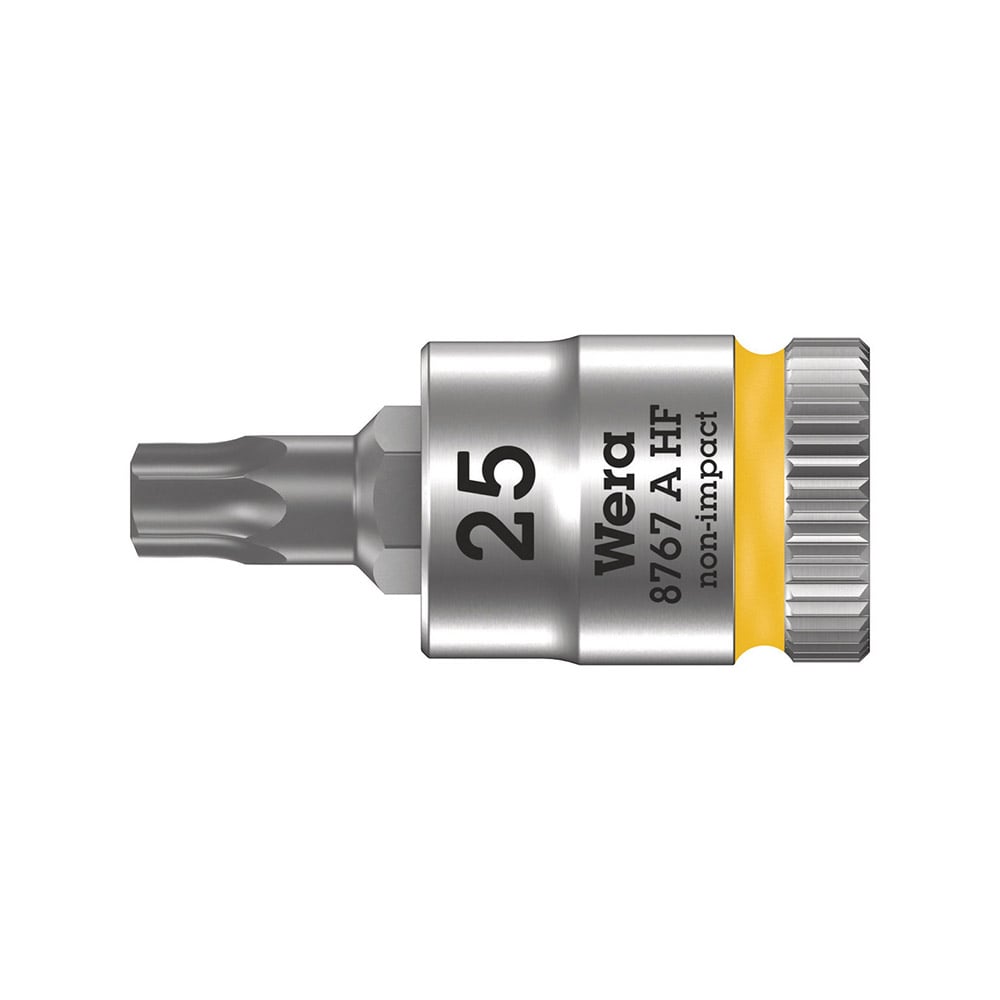 05003365001 Wera 8767 A HF Dado de Punta Zyklop TORX de 1/4” con Función de Sujeción. Tamaño de la Punta: TX 25 Longitud Total: 28.0mm Dimensión Externa: 12.0mm Diámetro Trasero: 12.5mm Altura de la Punta: 11.0mm