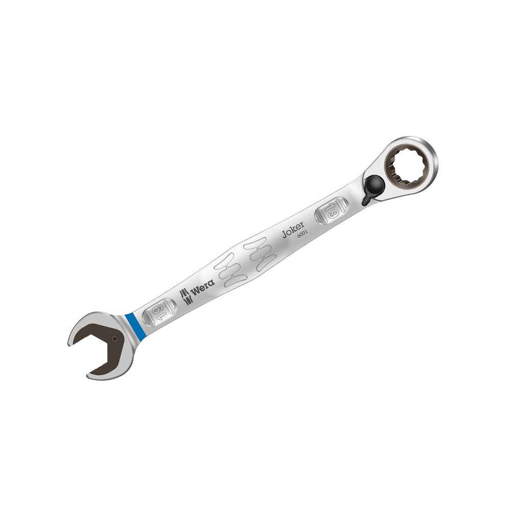 05020074001 Wera 6001 Joker Palanca de Cambio Llaves Combinadas con Trinquete. Tamaño de la Llave: 19mm Longitud Total: 246mm Dimensión Externa de la Boca: 42mm Espesor de la Cabeza: 9.5mm Dimensión Externa de la Llave de Trinquete: 34.7mm Altura Máxima de la Cabeza – Llave de Trinquete: 11mm