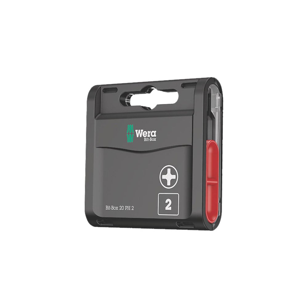05057750001 Wera Juego de 20 Puntas Phillips Bit-Box. Tamaño de la Punta: PH 2 Longitud Total del Vástago: 25mm / 1” Cantidad por Paquete: 20