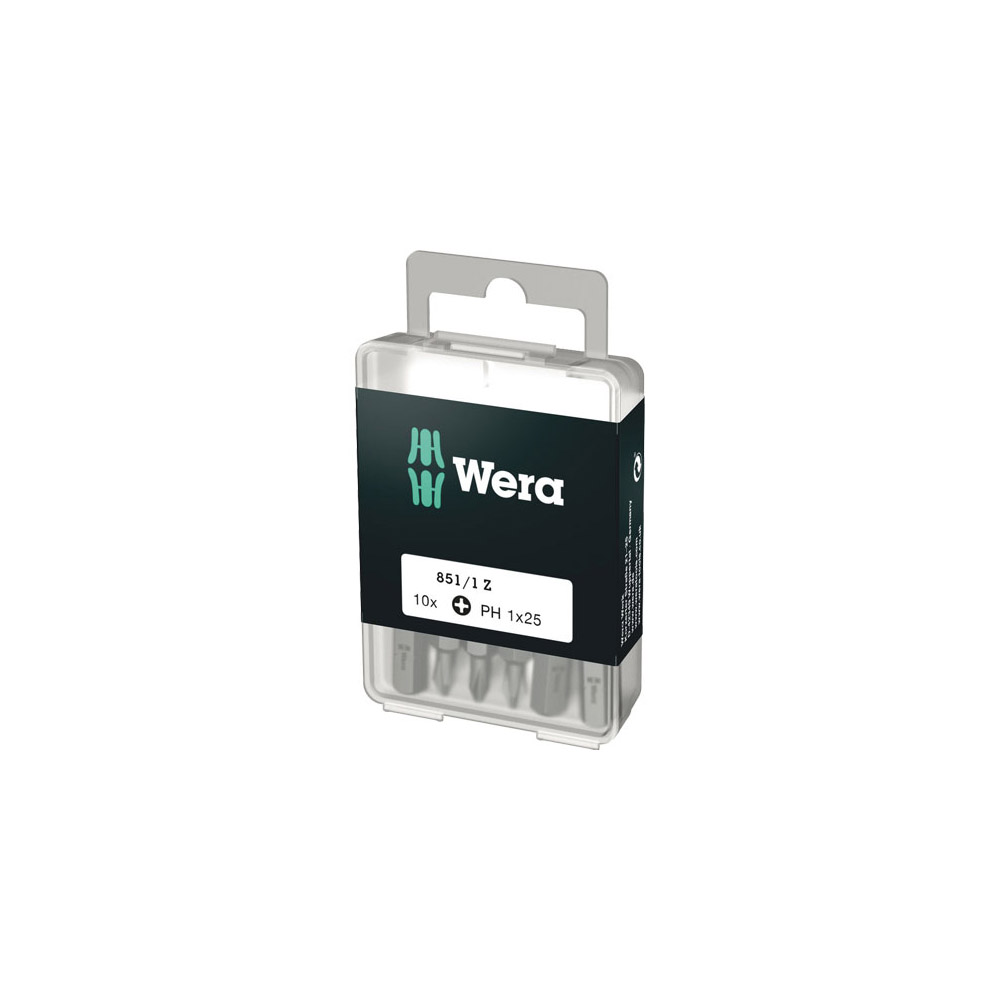 05072400001 Wera Punta 851/1 #1 Z DIY 1/4” Hex Phillips (Paquete de 10). Tamaño de la Punta: PH 1 Longitud de la Cuchilla: 25mm / 1” Cantidad por Paquete: 10