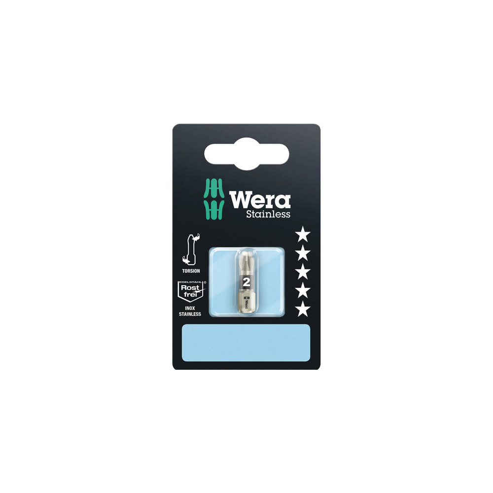 05073613001 Wera Punta 3855/1 TS SB Acero Inoxidable Pozidriv 1/4” Hex. Tamaño de la Punta: PZ 2 Longitud de la Cuchilla: 25mm / 1”