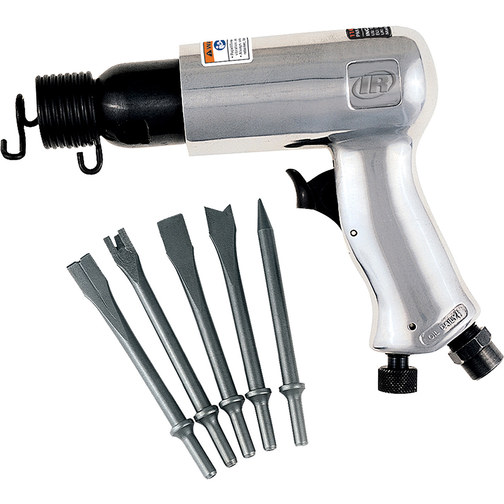 El 116K Ingersoll Rand Juego de Martillo Neumático Estándar con 5 Cinceles, 3500 BPM, es ideal para un corte rápido y sobresale en trabajos de sistemas de escape medianos, corte de paneles y reparaciones generales.