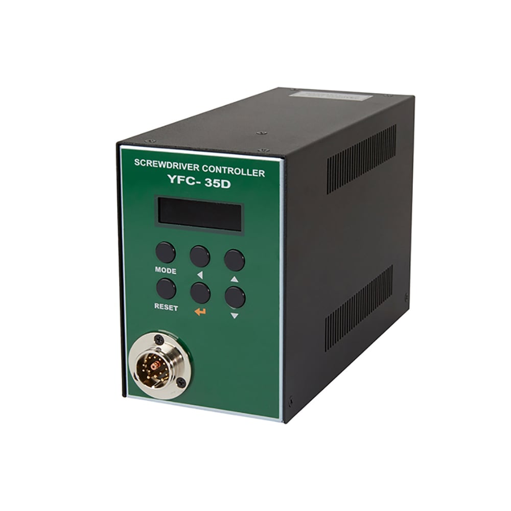 145877 Mountz Controlador YFC-35D El 145877 Mountz Controlador YFC-35D es una herramienta avanzada diseñada específicamente para aplicaciones de manufactura de alto torque y es compatible exclusivamente con destornilladores eléctricos de la Serie YF. Este controlador cuenta con un modo programable de múltiples secuencias de tres pasos adaptado para diversas aplicaciones de apriete.