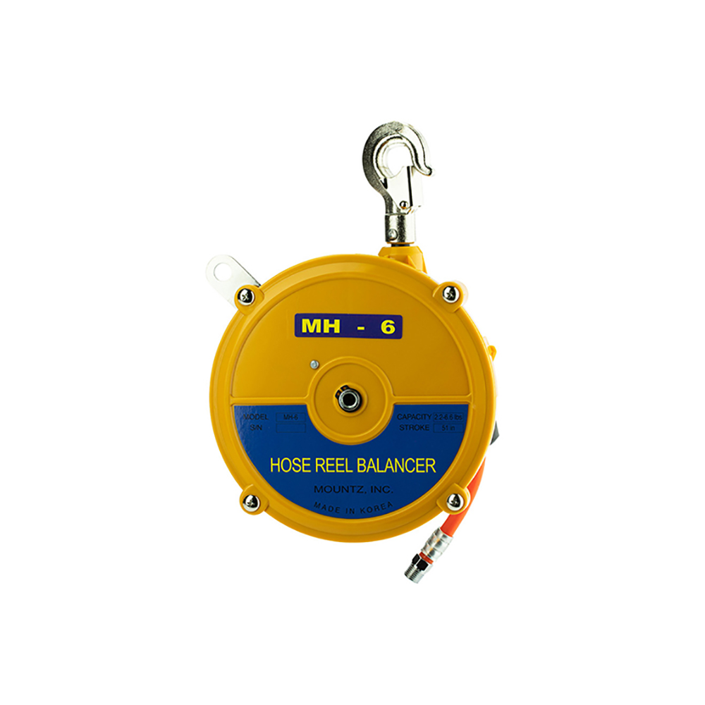 180513 Mountz Balanceador De Herramienta Con Carrete De Manguera De Aire MH-6. Modeloo: MH-6 Peso De La Herramienta: 2.2lbs Cap. Peso Balanceador: 2.2 – 6.6lbs Carrera – Americanoa: 51” Carrera – Métrica: 1.3m