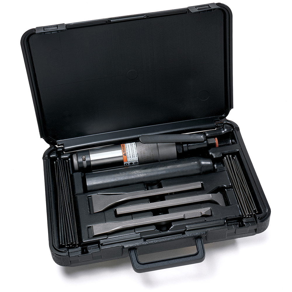 El 182K1 Ingersoll Rand Kit de Escariador de Agujas y Cincel Neumático con Carrera de 1-1/16” ofrece 4,000 golpes por minuto y es nuestro conjunto más potente y duradero. El diseño tipo ?swan neck? agrega comodidad adicional tanto en uso vertical como horizontal.