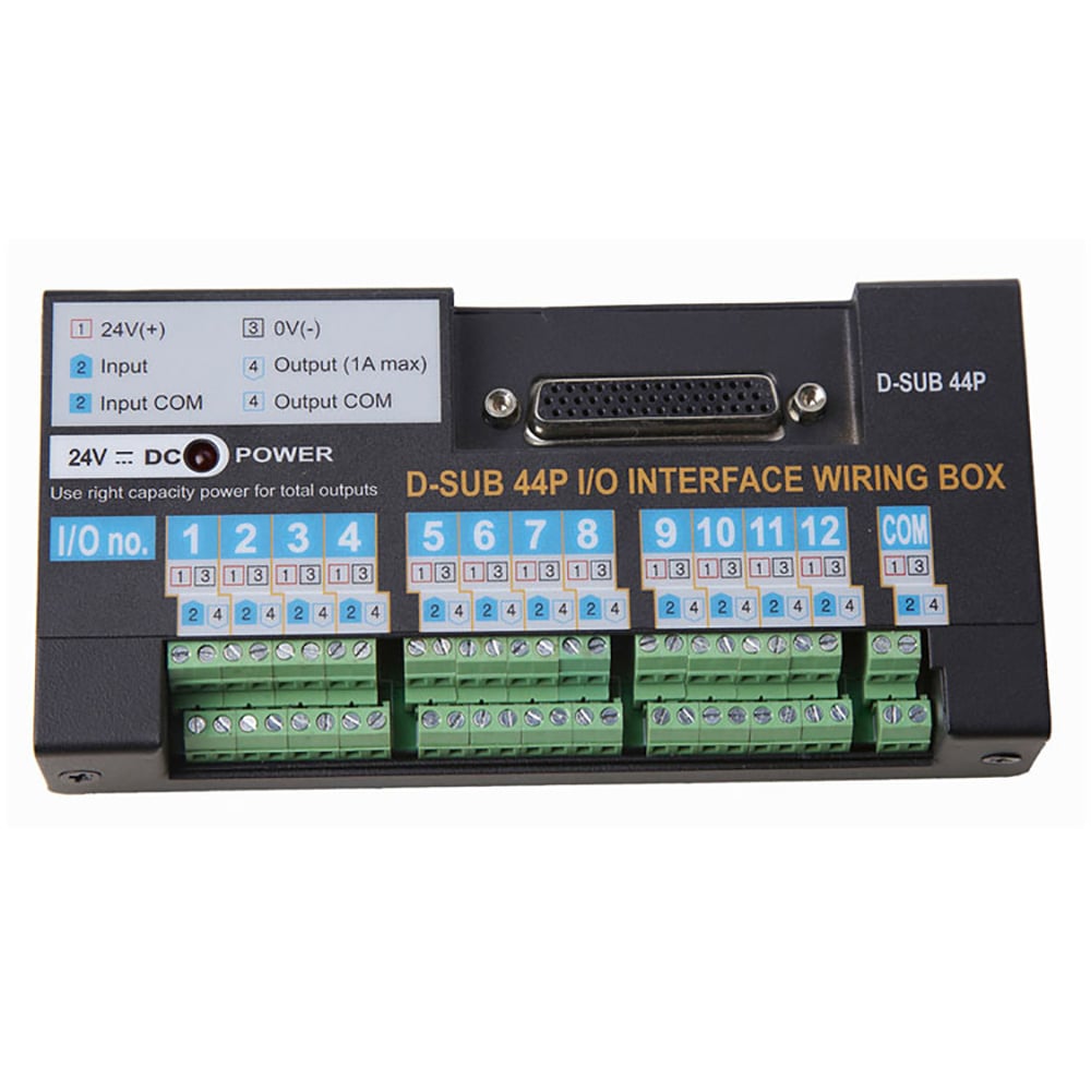 310055 Mountz Caja de Cableado I/O 44P La 310055 Mountz Caja de Cableado I/O 44P es la solución definitiva para agilizar sus sistemas de control industrial y simplificar el proceso de cableado. Esta innovadora caja de cableado está diseñada para brindarle opciones de cableado fáciles y convenientes para hasta 12 entradas y salidas de su controlador ECD, ECTD, EPC-10, ADC o MDC, todo mientras comparte una sola fuente de alimentación de 24V.