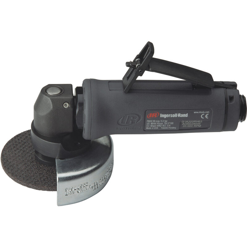 444 Ingersoll Rand Esmeriladora Neumática Angular Extendida con Rueda Tipo 27 de 4”. Número de Parte: 444 Accionamiento/Tipo de Acelerador/Ubicación del Interruptor: Empuñadura Accionamiento/Tipo de Acelerador/Tipo de Interruptor: Palanca de Seguridad