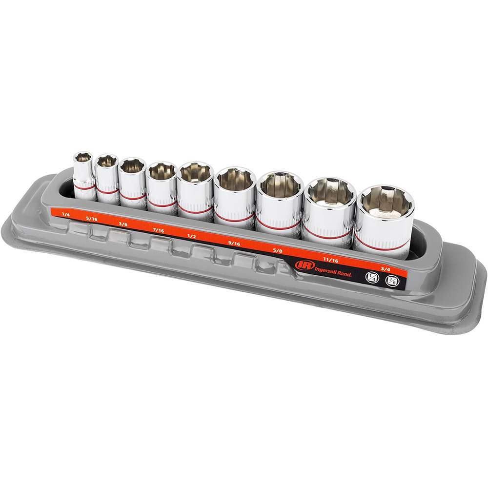 752040X Ingersoll Rand Juego de Dados Antideslizantes SAE Tech Solutions – 9 Piezas. Color: Plata País de Origen: Taiwán Tamaño del Cuadro: 1/4”, 3/8” ECCN (Número de Clasificación de Control de Exportación): EAR99 Material de la Carcasa: Acero al cromo vanadio