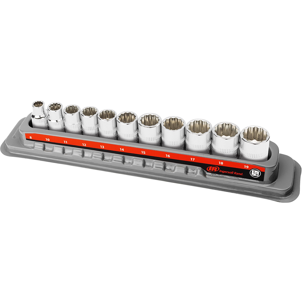 La fiabilidad de Ingersoll Rand se refleja en el 752047X Ingersoll Rand Juego de Dados Cortos de 3/8” – Métrico de 12 Puntas (11 Piezas).