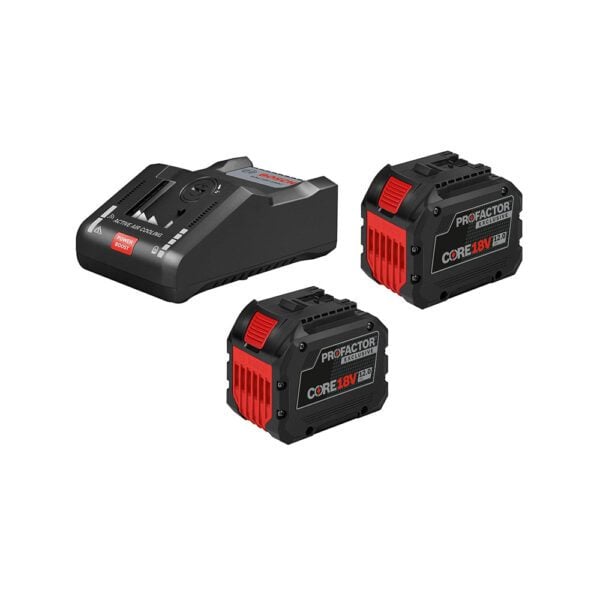 Bosch GXS18V-18N27 Kit de Inicio de Resistencia PROFACTOR CORE18V de 18V ofrece la próxima generación de rendimiento de batería y velocidad de turbo cargador necesaria para enfrentar aplicaciones brutales. Cada batería de Rendimiento PROFACTOR es un sistema de energía verdaderamente flexible que proporciona compatibilidad con toda la gama de herramientas Bosch de 18V. Además, la Batería de Rendimiento está optimizada para herramientas PROFACTOR con Tecnología BITURBO Brushless, un sistema de motor y transmisión de alto rendimiento que ofrece potencia comparable a herramientas con alta demanda de cable. La batería Bosch GXS18V-18N27 CORE18V 8.0 Ah PROFACTOR ofrece un 100% más de duración y más del 75% más de potencia que la batería CORE18V 4.0 Ah Compact. Con solo 2.14 Lbs., esta batería de 8.0 Ah ofrece el equilibrio ideal de tamaño, peso y potencia. La Batería de Rendimiento incluye la última tecnología de celdas 21700 y el sistema de gestión de calor CoolPack 2.0 para potencia y eficiencia. El Cargador de Batería Turbo GAL18V-160C ofrece una potencia de carga de 16 amperios, el doble de la corriente de carga de la generación anterior de cargador de 8 amperios. Además, la refrigeración activa por aire, utilizando dos ventiladores para enfriar la batería, optimiza el tiempo de carga mientras protege las baterías del sobrecalentamiento. Cuenta con un modo Power-Boost, que aumenta la corriente eléctrica cargando la CORE18V 8.0 Ah de gastada al 50% en 15 minutos. La conectividad Bluetooth, disponible a través de un Módulo de Conectividad (se vende por separado), proporciona a los usuarios acceso a la aplicación Bosch Toolbox para la salud de la batería, nivel de carga y modos de carga adicionales. Juntos, la batería CORE18V PROFACTOR de Rendimiento y el cargador turbo GAL18V-160C Hell-ion son la solución ideal para aumentar el rendimiento y reducir el tiempo de inactividad para los usuarios que enfrentan las aplicaciones más exigentes y brutales.