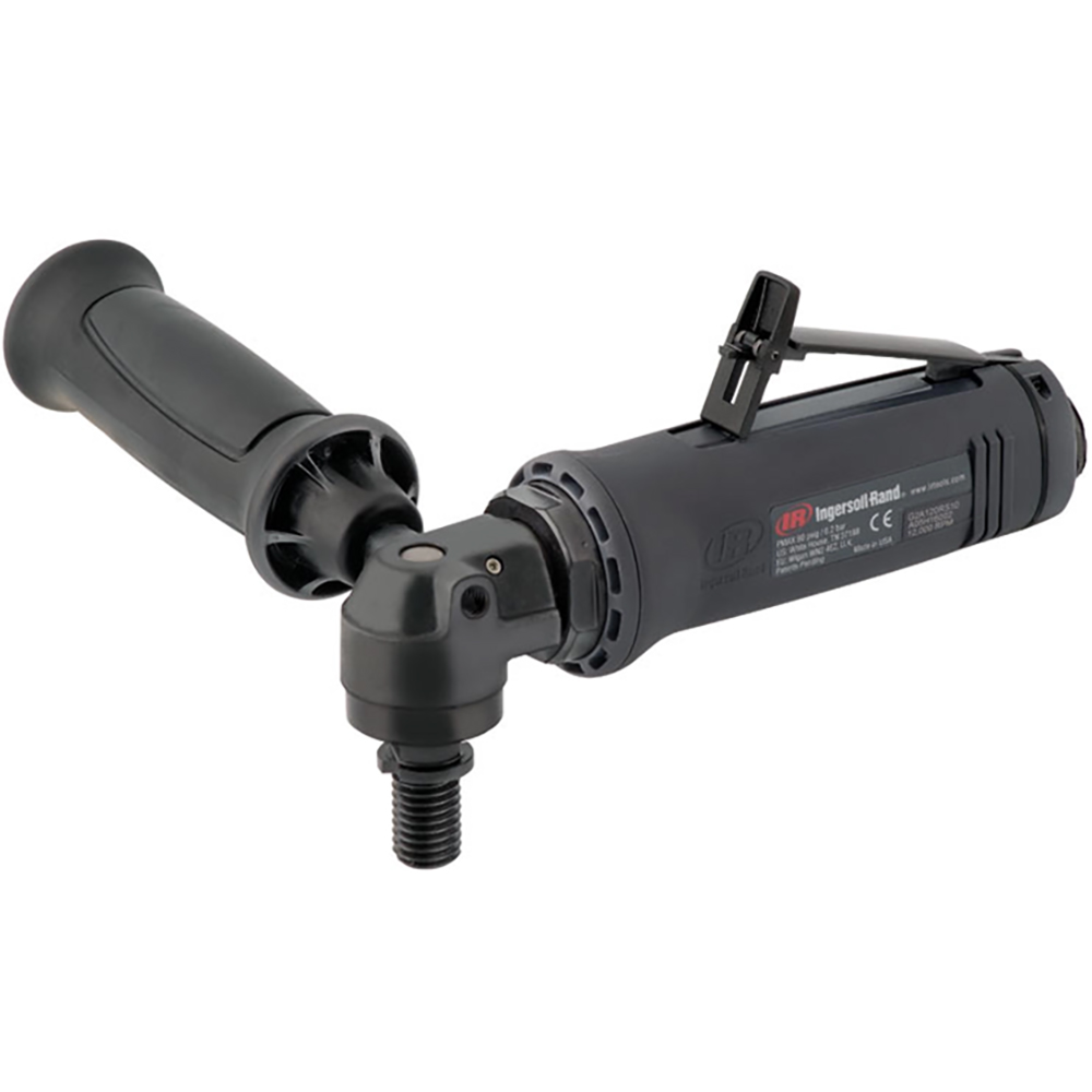 G1A120RS4 Ingersoll Rand Lijadora Neumática Angular, 12000RPM. Número de Parte: G1A120RS4 Potencia Nominal (hp): 0.4 hp Potencia Nominal (kW): 0.3 kW Velocidad Máxima en Vacío: 12000RPM Escape: Trasera Rosca de salida: 1/4”-20 Rosca Peso: 1.1lbs / 0.5kg