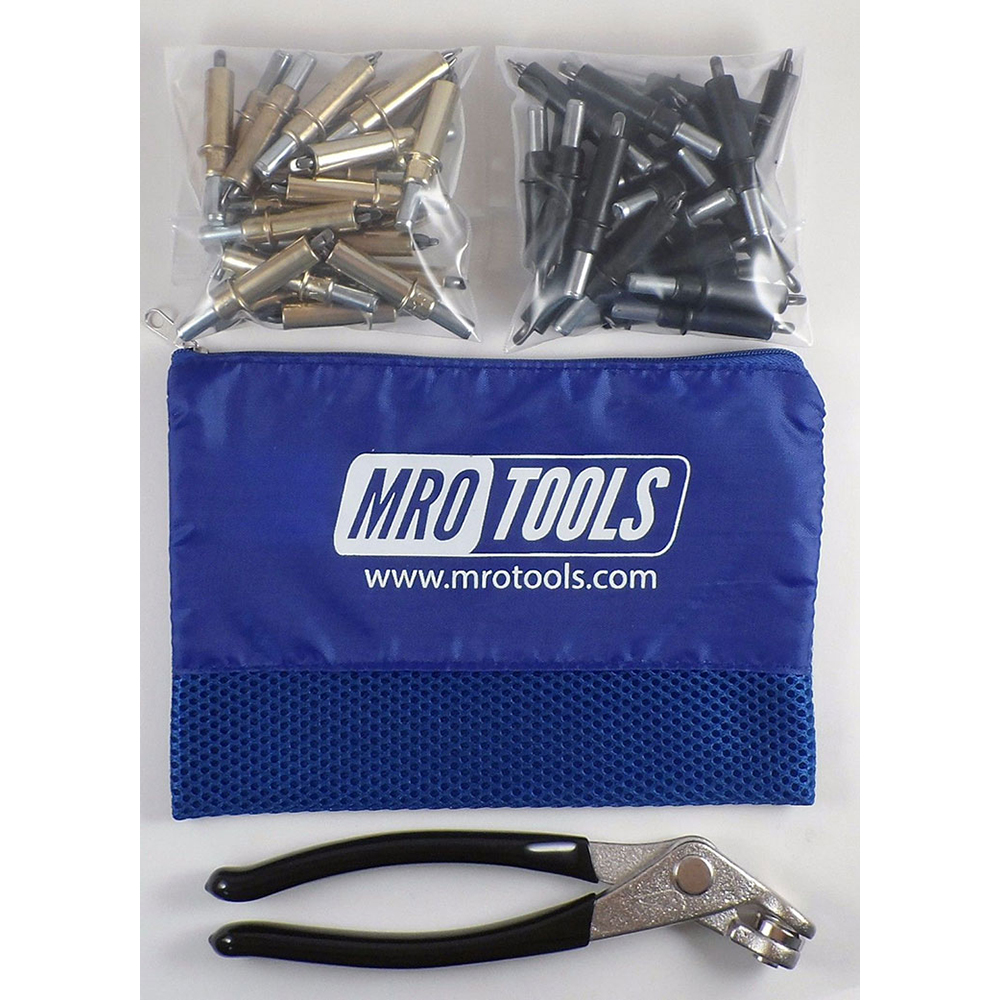 MRO Tools K4S50-4 25 3/16” y 25 5/32” Juego de Sujetadores Cleco 0-1/4” Estándar, Con Bolsa de Transporte . Los Juegos de Sujetadores Cleco ofrecen un valor increíble con su bolsa de transporte de poliéster duradera (6” H x 8.5” W) para guardar tus Clecos y un par de alicates Cleco diseñados para instalar sujetadores con resorte. Los sujetadores Cleco se utilizan ampliamente en la reparación de chapa metálica en automóviles, carreras y aviones. Los sujetadores Cleco son sujetadores con resorte y cuerpo de acero que están diseñados para sujetar temporalmente varias hojas de material juntas antes de que las piezas se unan permanentemente. Los sujetadores Cleco son una alternativa simple y económica a los sujetadores competitivos y están disponibles en varias longitudes y resistencias para adaptarse a diferentes procesos.