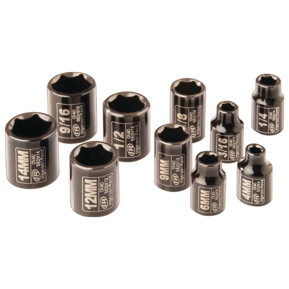 SK2C10N Ingersoll Rand Juego de Dados de Impacto Hexagonales Universales Métricos y SAE de 10 Piezas con Entrada de 1/4”